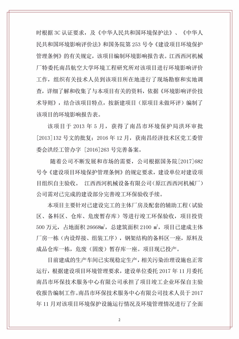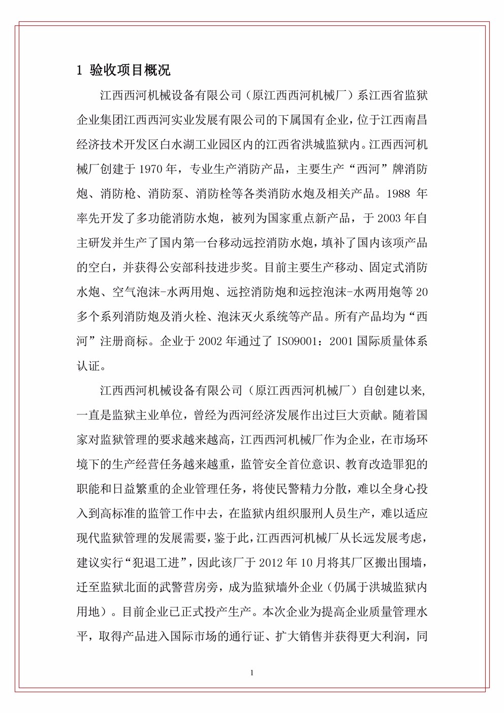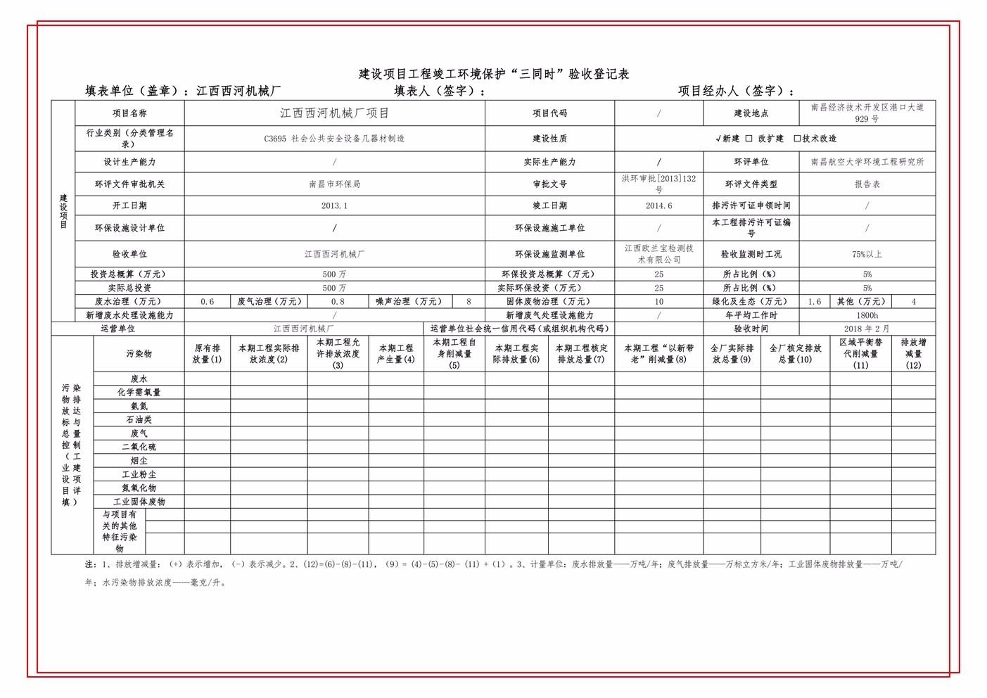 江西西河機械設(shè)備有限公司(原江西西河廠)項目驗收竣工文本公示