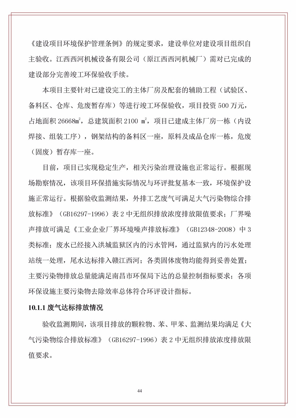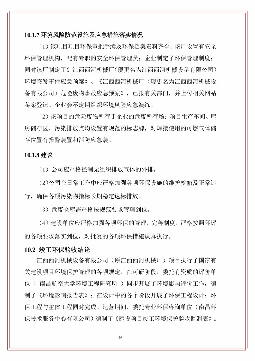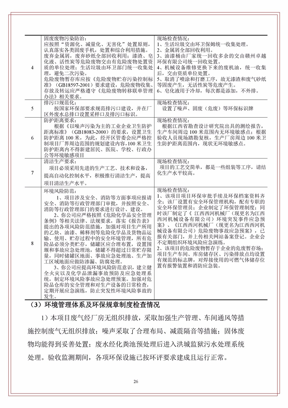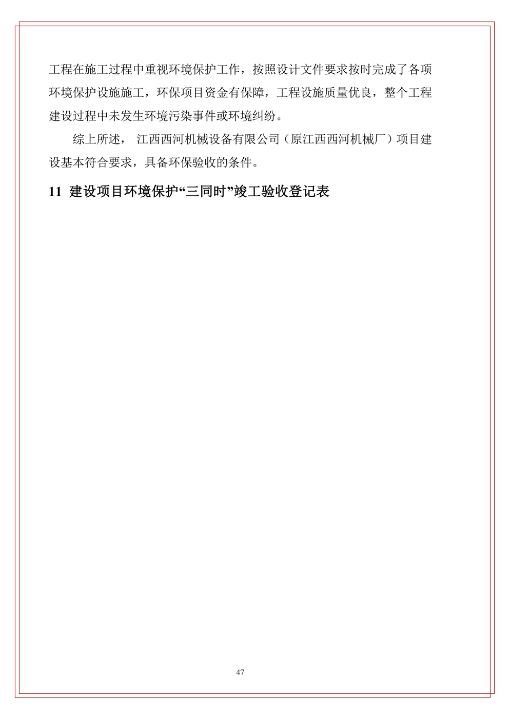 江西西河機械設(shè)備有限公司(原江西西河廠)項目驗收竣工文本公示